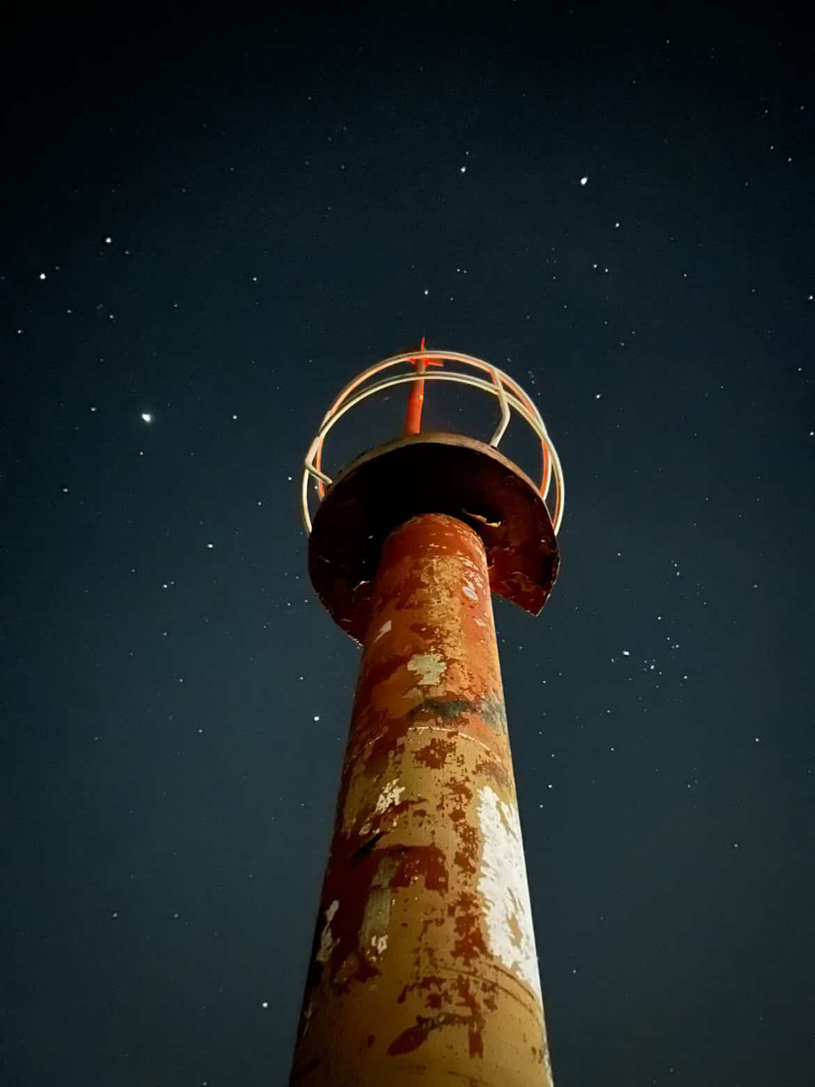 - Descripción da fotografía: É o faro de Ares, é podese ver un cilindro, que é o faro, as estrellas, puntiños e circulos que non se ven pero son as barras de enriba.